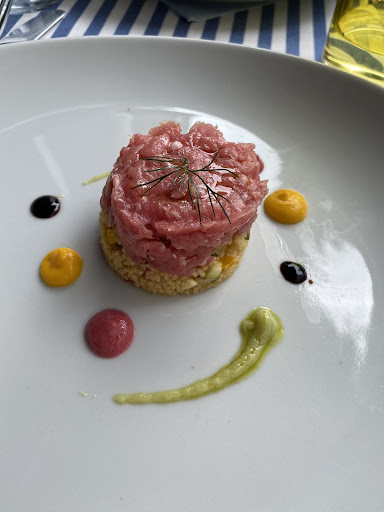 Ristorante: non è molto grande, e con il distanziamento del covid, i posti all'interno non erano fruibili, ha adibito un bel balconcino lungo dove ci sono i tavoli per due davvero molto ben arredato. Dentro l'arredamento è stile marittimo ovviamente. Servizio: le ragazze dello staff sono gentilissime e cordiali. Menù: oltre al classico menù composto da piatti di mare con pescato del giorno, ci sta un menù di antipasti con una selezione di 5 antipasti. Cibo: abbiamo preso due menù antipasti, due primi e due dolci. tutto fenomenale! il migliore dei 5 antipasti a parer mio se la giocava o la tartare di tonno sul cous cous oppure il polpo alla brace. i primi erano saporitissimi e i dolci sono stati la ciliegina sulla torta. Prezzo e Consigli finali: prezzo un po più costoso rispetto alla media ma tutti gli ingredienti erano il top, il pesce e i frutti di mare erano freschissimi e le porzioni erano giuste. se vi trovate da quale parti vi consiglio di andarci, parcheggiate la macchina a 7 minuti dal locale che ci sta un parcheggio grosso che costa poco. molto...