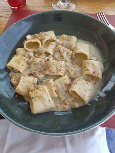 04-02-2025 Giornata in zona Napoli e quindi pranzo partenopeo. Non scelgo un locale in riva al mare, ma un pochino spostato con vista mare. Parcheggio privato con circa 10/12 posti auto. Esternamente carino con qualcosa da sistemare ma una volta entrati tutto cambia. Piastrelle blu, pareti bianche e vista mare ti fanno sentire proprio di essere al mare. Ci fanno accomodare e prendo un antipasto o di alici fritte sale e pepe (€9,00). Una porzione giusta con del pesce freschissimo, un piatto che ho gustato attraverso il sapore del pesce esaltato dal sale e pepe, fritto molto bene. Proseguo con un primo Mezza manica al ristretto di crostacei, crudo di Mazara, salsa di mozzarella e limone nero (€22,00). Appena arrivato ho detto wow. Assaggio la pasta che era molto al dente e indietro con il sale. Mescolando tutti gli ingredienti compreso il ristretto che era sul fondo del piatto tutto è cambiato. La pasta si sentiva che era di alta qualità e i sapori degli ingredienti erano perfettamente bilanciati e ho compreso la scelta di utilizzare meno sale per la pasta. Ad ogni assaggio si percepivano chiaramente il pesce, la mozzarella il limone e se la pasta fosse stata più salata questo equilibrio si sarebbe alterato. Concludo con un dolce e prendo cannolo croccante alla nocciola con ricotta e pera (€7,00). Assaggio per primo il ripieno e rimango immediatamente colpito dal sapore della pera con la ricotta. La dolcezza era data dal frutto e sicuramente senza altro zucchero aggiunto. Il croccante ben fatto e decisamente più dolce del ripieno ma gustati assieme erano fantastici. Ho gustato il tutto accompagnato da un bianco Falanghina Campi flegrei Agnanum (€20,00). Piacevole, dal corpo delicato se bevuto alla giusta temperatura. Troppo freddo perde di molto il sapore. Servizio gentile ed educato. Molto piacevole il cestino del pane. Unica cosa da migliorare, il caffè. Locale che assolutamente consiglio di provare, che utilizza sapientemente delle ottime materie prime e a mio avviso con prezzi...