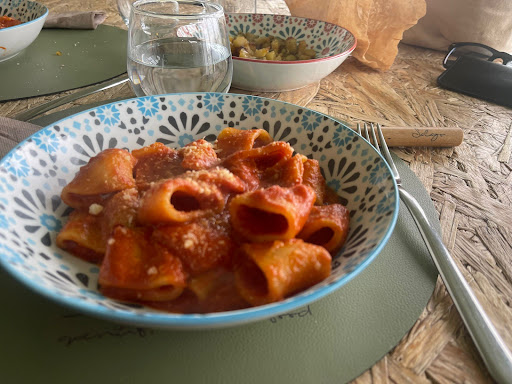 Il proprietario e il personale sono accoglienti e il parcheggio, gratuito, si trova in una ex chiesa, non immediatamente visibile al primo tentativo. Abbiamo ordinato tre antipasti: patate, friarielli e melanzane, tutti molto buoni. Abbiamo anche preso un bicchiere di vino, due acque naturali e come primo piatto due paccheri allo scarpariello che, tuttavia, non corrispondevano alla descrizione del menu: erano serviti con una semplice passata di pomodoro. Abbiamo cercato di spiegarlo ma non siamo stati ascoltati, anche se non è stato un problema rilevante.