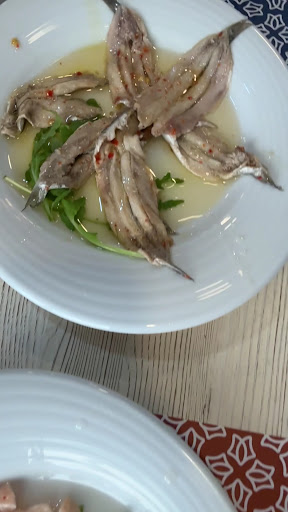 Read moreCatastrofica ,abbiamo mangiato fuori perché al interno non c'erano posti ,tavolo in plastica sedie uguale ,nulla di raffinato,tovaglia con fogli di carta ,mancavano solo i bicchieri di plastica e facevano bingo ,ma il bingo la fatto il cibo ho scelto il pranzo fisso antipasto zeppoline ,tutte cose di pochissimo conto,poi paccheri con polipetti unica cosa che dei polipetti non c'era traccia solo l'odore e vergognoso che una pescheria che vende po' esce fa le pulci su un primo che costa 10/12 euro non ci mette nemmeno un moscardino sopra, per quanto riguarda il secondo 5 acciughe 3 merluzzetti 4 rondelle di totano 3/4 gamberetti frittura di paranza altra cosa vergognosa una pescheria che fa questo e da cambiare mestiere , il pranzo costava 30 euro ma il vino e acqua a parte e questa e un altra vergognosa azione ,io quando vado al ristorante e pago a pranzo fisso e tutto compreso allora se ci mettevo il dolce ,caffè un pranzo del genere mi costava 45/50 euro e una cosa che non ci sta ,mangiare accanto alla pescheria al sole con mosche che ti assalgono e la puzza di pesce non ne vale assolutamente andarci in questo posto ,con questi soldi ad altre parti si...