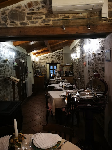 Ein schöner, kleiner Raum, mit ein paar Tischen. Das Haus typisch, aus Stein. Der Speiseraum ist liebevoll, kitschig und gemütlich eingerichtet, das Personal- oder besser: die Familie total freundlich und herzlich.