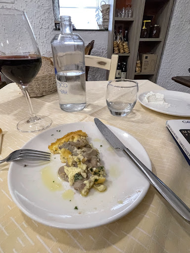 Read moreDi ritorno da una visita a Triora, decidiamo di fermarci per cena lungo la strada e la scelta ricade su questo ristorante appena fuori dall'abitato di Badalucco e segnalato da un grande fungo accanto all'imboccatura del ponte che porta al locale. Nonostante siano le 19:30 precise (ora di apertura), i cinque o sei posti auto in un'insenatura della strada sono già occupati. Vista la lontananza da Badalucco stiamo per desistere e cambiare meta, quando, proseguendo un poco lungo la strada, notiamo un grande spiazzo vuoto e ci chiediamo se possiamo parcheggiarci; entrandovi, leggiamo che è il parcheggio del ristorante. Consigliamo vivamente ai gestori di installare accanto al fungone un bel cartello ben leggibile con scritto "Parcheggio riservato a 50 m sulla destra". Una telefonata al volo conferma che c'è posto (consigliabile sempre la prenotazione) e ci riservano un tavolo abbastanza largo da poter stare in due più il nostro passeggino. Probabilmente la clientela è costituita perlopiù da affezionati o locali più che da turisti di passaggio, dal momento che danno per scontato che chi arriva conosca la loro formula senza bisogno di illustrarla: si tratta di menù fisso a 35 € comprensivo di sei antipasti, due primi, un secondo, dolce, acqua, vino della casa e digestivi; le portate sono perlopiù a base di funghi (ma non tutte) e sono le stesse per ogni tavolo. I punti di miglioramento finora segnalati terminano qui, perché l'arrivo delle pietanze rende trascurabile ogni nota negativa. Il servizio è veloce e puntuale e i due camerieri molto affabili. Tra gli antipasti, degne di nota la carne cruda con funghi e la frittata con funghi. Ottimi anche i due primi, ovvero gli immancabili tagliatelle e risotto con porcini. Viene lasciata la scelta solo sul secondo: funghi impanati, funghi trifolati, agnello o fiorentina. Vista la specialità del locale, le due scelte di carne, seppur sicuramente preparate con maestria, paiono un po' fuori luogo; andiamo quindi convinti sui due secondi di funghi e la scelta è azzeccata, perché trattasi di portate deliziose (a mio parere, i funghi trifolati sono stati il piatto migliore di tutta la cena). Visto che il servizio di antipasti e primi è all'inglese (alla francese indiretto per i secondi) e per alcune portate viene chiesto se la porzione è sufficiente (si può anche ri-chiedere un piatto che si è apprezzato particolarmente), c'è la possibilità che non si riesca a finire tutto il vassoio dei secondi. I camerieri sono però solerti a proporre di confezionare una doggy bag con gli avanzi, pratica molto apprezzata. Come dolce scegliamo il tiramisù, che viene presentato come "la specialità della casa" e servito in un grande tegame (tipo vaso da notte) che fa sovrastimare una porzione in realtà giusta. Ultima chicca è la presentazione dei digestivi, senza timore di lasciare la bottiglia del limoncello sul tavolo insieme a un voluminoso dosatore di grappa aromatizzata al gusto preferito. Esperienza culinaria senz'altro consigliabile...