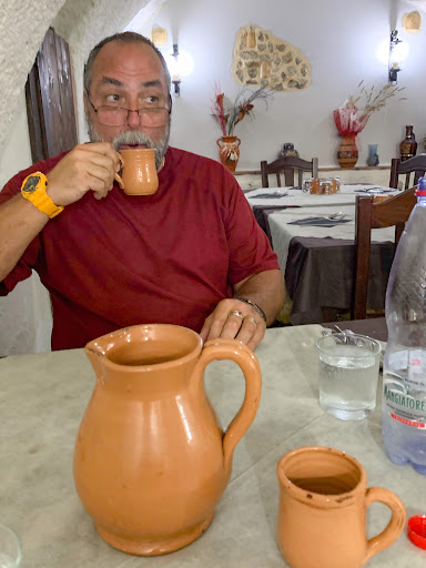 We missed out on our lunch spot in Santa Caterina dello Ionio at it was pretty late when we left but we drove like a madman trying to get to Badolato before lunch service stopped and from what we gathered on Google Le Botte was our only hope. We arrived at the place at 14:10 and the kitchen was already shutting down but the proprietor after checking with his wife who runs the kitchen and short argument seated us. He told us we could have the special which was fresh pasta and porcini but had to be done in 30 minutes or less which suited us so along with a mezza of house wine we were pretty happy piggies munching on delicious bread slurping fresh pasta washed down by as many mezza as allowed. Many thanks for accepting some last minute hungry Canadian travelers and sorry for disturbing the peace between front of house and back but your meal was well appreciated and your amazing...