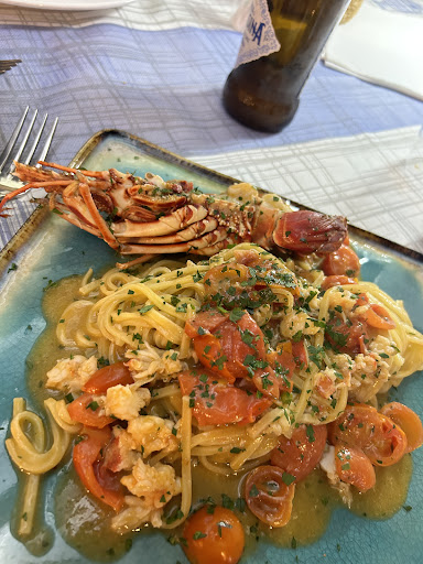 Read moreMi spiace non aver fatto foto, ma siamo tanti letteralmente travolti dalle sorprese. Iniziamo dal posto: quando siamo arrivati, l'esterno si presenta anonimo, tanto da averci quasi scoraggiato, ma una volta dentro la prima sorpresa: locale molto caratteristico, un mix perfetto tra tradizione del posto e stile moderno, piacevole, equilibrato, accogliente. Igiene ben curata( non ho visto il bagno). Ho apprezzato l'assoluta assenza di aloni su posate e stoviglie, e più in generale la sensazione di pulito che il locale trasmetteva. Personale molto affiatato, cordiale mai invasivo pronto a consigliare se richiesto senza essere insistente. Disponibile e allegri, rendono la permanenza ed il servizio molto gadevole. Abbiamo preso 2 cocktail di gambero, 1 farfalle al pomodoro per il bambino, 1 spaghetti gambero e lime, un nero di seppia e tartare di gamberi, 2 bottiglie d'acqua, 1 lattina di coca cola, e 3 sorbetti di loro produzione. Tramite l'app con la forchetta abbiamo avuto il 50% sui primi e gli antipasti presenti nel menù ed abbiamo pagato un totale di 72,5 euro. Prezzo più che onesto considerato il posto, la stagione ma sopratutto la perfezione dei piatti. Gli antipasti serviti in maniera molto elegante, e non le classiche baggianate, avevano un gusto molto delicato, ben equilibrato. La pasta al sugo, tutt'altro che banale, con un sugo che sembrava esser fatto apposta per il mio palato oltre che per quello del bambino. I 2 primi di pesce qualcosa di unico. Gustosi, cotti perfettamente, piatti eleganti e abbondanti. Solitamente abbondanza e qualità non vanno d'accordo, ma in questo caso nulla da eccepire. E dire che ero indeciso con i primi di carne che sembravano molto invitanti. Infine i sorbetti. Artigianali, serviti sulla buccia del frutto stesso ad eccezione di quello ai gelsi evito invece dentro un cedro. Non solo il gusto unico di ciascuno dei sorbetti, ma era visibile la qualità del trattamento subito dai frutti per permettergli di essere dei porta sorbetto. Soddisfatto sotto tutti i punti di vista. In genere ci piace cambiare locali, ma onestamente ci tornerò volentieri e magari proverò le altre...