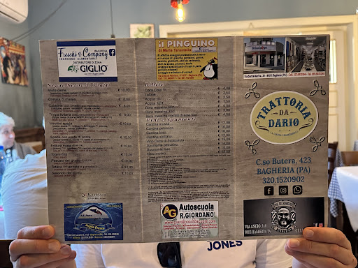 Read moreThis Italian restaurant gives an incredible atmosphere of an Italian restaurant. The dishes contain a lot of seafood. We chose to eat the seafood Risotto which was amazing! In terms the interior of the restaurant had a pleasant vibe. The waiter was extremely welcoming asking us where we are from and introducing us to the Sicilian traditional dessert Cannoli which was also very delicious. The Italians were so welcoming they offered a free drink called Limoncello, in my opinion a generous offer by the restaurant. At the end the waiter asked us to take a picture with him as he collects pictures of people from all over the world that ate at the Trattoria da Dario restaurant and puts the pictures on a big world map that is placed in the restaurant. I recommend this restaurant if you are a tourist in Bagheria and want to experience a great...