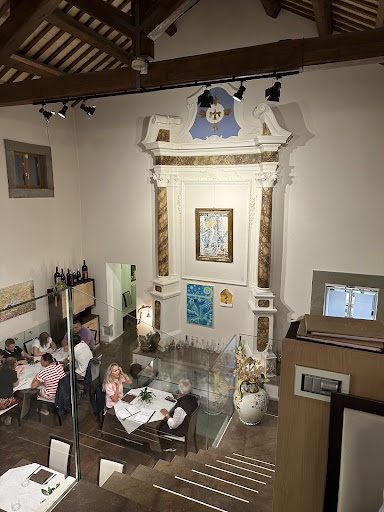 Read moreLocation meravigliosa!! Il ristorante è all’interno di una vecchia chiesa e chi si è occupato della progettazione e poi chi ha svolto i lavori ha fatto un lavoro impeccabile!bellissimo il soppalco a ferro i cavallo che rende visibile il tetto anche a chi sta sotto,belle le vetrate sul soppalco che rendono tutto luminoso e armonioso…insomma un grande plauso a chi ha fatto i lavori. Il personale che serve i tavoli è composto da delle ragazze molto giovani ma questo non toglie nulla alla velocità e alla cura del servizio. Le mie 4 stelle sono la media fra i primi piatti che erano veramente ECCEZIONALI e il secondo che invece non mi è sembrato nulla di che soprattutto se paragonato ai primi. Mi sarei aspettato una carne che si scioglieva in bocca e il sale nero messo a parte in delle ciotoline così da poter salare la carne a piacere mentre io realtà sulla carne era stato messo sale nero e sale iodato normale grosso che poi te lo ritrovavi in bocca ed era fastidioso…peccato perché questa piccola accortezza avrebbe sicuramente esaltato la qualità della carne che invece è stata rovinata. Non abbiamo assaggiato le pizze ma ci sarà modo perché il locale merita,lo staff è gentile e attento e sono certo che la cucina ( che già è ottima ) può solo migliorare in quelle piccole cose che le farebbero fare un altro...