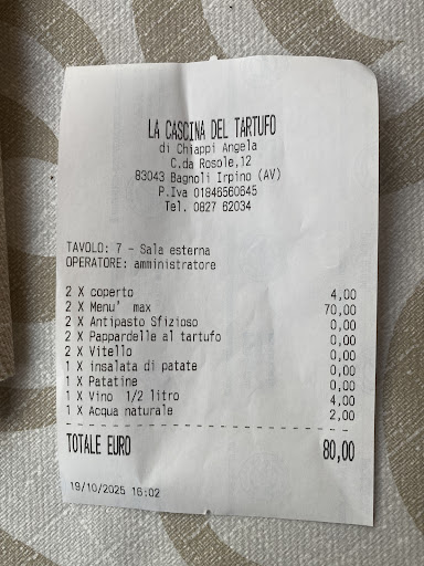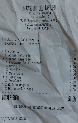 Read moreSono stato a settembre a pranzo, eravamo in due persone. Il locale si trova lungo una strada provinciale, il che lo rende di immediata visibilità e facile da raggiungere da parte di chi come me viene da fuori o si trova di passaggio. Vista la temperatura elevata ci siamo accomodati all'interno, dove ho trovato un ambiente rustico e accogliente, in linea con quello che mi sarei aspettato. Il titolare che ci ha serviti e seguiti lungo tutto il pranzo si è dimostrato essere una persona cordiale e disponibile, il servizio è stato rapido e senza alcun intoppo, va specificato che siamo arrivati quando ormai gli altri commensali si avviavano alla fine del loro pranzo. Abbiamo ordinato l' "Antipasto della Cascina", che comprende quasi tutti prodotti caserecci e vecchio stile, dei quali mi è rimasto impresso il saccottino ripieno di ricotta al tartufo. Consiglierei anche i primi fatti in casa, dispiace solo che la nostra prima scelta da menù non fosse disponibile quel giorno; per concludere poi abbiamo optato per il dolce. In conclusione possiamo ritenerci soddisfatti, il pranzo è stato piacevole, con una proposta rustica, adatta ad una clientela principalmente turistica e con prezzi più che onesti. Non guasterebbe una più accurata selezione delle materie prime lavorate in...