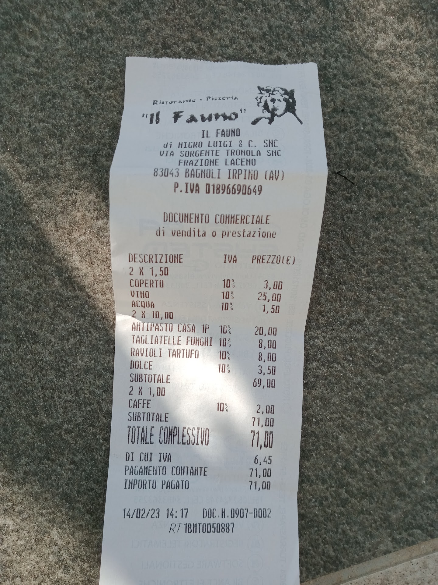 Read moreIl mio ragazzo che è irpino, mi parlava spesso di questo ristorantino tipico dove lui era già stato e voleva portarmici, e in occasione di una passeggiata sul Laceno, abbiamo deciso di fermarci qui a pranzo. Non avevamo prenotato, essendo martedì, non ce ne era nemmeno tanto bisogno, non c'era tanta gente ma nei weekend e in giorni festivi è consigliabile prenotare. L'ambiente è molto rustico, sa di montagna, sa di casa. Abbiamo iniziato il nostro pranzo con l'antipasto della casa (minimo per 2 persone) composto da: -bruschette ai funghi e al tartufo -carpaccio al tartufo -insalata di tartufo -ricottina al tartufo -asparagi con formaggio e tartufo -polenta con formaggio e funghi -involtini di speak, podolico e tartufo -funghi impanati al tartufo L'antipasto, non è quello classico con i salumi (presente comunque nel menù) ma presenta tanti piccoli assaggi sfiziosi di prodotti locali. Per due persone va benissimo. Per me era un terreno nuovo, non avevo mai assaggiato il tartufo e sono rimasta piacevolmente colpita dal suo sapore e da come si sposasse bene con le varie portate. Era tutto buonissimo, combinazioni di sapori che si sposano alla perfezione. Ho amato tantissimo la ricottina, le bruschette, l'insalata di tartufo, i funghi impanati e l'involtino di speck. Abbiamo poi proseguito con un tris di primi a scelta, sempre per un minimo di 2 persone e tra quelli proposti abbiamo scelto questi "tre sacrifici" così scherzosamente chiamati dal proprietario molto simpatico che nel servirci ogni primo diceva "ecco il primo sacrificio", "arriva il secondo sacrificio", e così via: -ravioli al tartufo -scialatielli speck, podolico e tartufo -cortecci ai funghi porcini al cartoccio Ci sono stati serviti prima i ravioli fatti con burro ripieni di ricotta e in superficie il tartufo. Devo dire buoni ma nulla di eccezionale, i classici ravioli. Sono poi arrivati gli scialatielli e qui c'è stata veramente un esplosione di sapori:la pasta fresca fatta a mano corposa, te la sentivi proprio in bocca con il podolico che si scioglieva e con lo speck ed il tartufo, sono stati un esplosione di sapori e bontà. Sono stati i miei preferiti fino all'arrivo del "terzo sacrificio":le meravigliose cortecce al cartoccio fortemente volute dal mio ragazzo che conosceva già la loro bontà. Qui veramente non ci sono state parole. Le cortecce al sugo col formaggio cucinate in questo cartoccio sono state la fine del mondo. I miei primi preferiti sono stati gli scialatielli e le cortecce ma per poco le cortecce hanno battuto gli scialatielli. Non abbiamo continuato col secondo perché dopo un vario antipasto o prendi il primo o il secondo. Abbiamo terminato il pasto con una loro specialità: il gelato nella frutta. Morbido gelato che a seconda del gusto prescelto è servito nella frutta: abbiamo provato limone, pesca, fico e fragola. Il limone era un po' amaro, il fico il più buono. Il pranzo sembrava terminato ma a sorpresa il mio ragazzo ha chiesto al cameriere una fettina di cheesecake ai frutti di bosco per festeggiare il mio compleanno e poter spegnere la candeline. Ed anche questa è stata molto buona. Il personale è gentile e cordiale, il proprietario simpaticissimo, ci ha servito durante tutto il pranzo e ha scambiato qualche chiacchiera con noi. Il rapporto qualità/prezzo è altissimo, si mangia bene e tanto senza spendere un patrimonio. Sicuramente è un posto in cui fermarsi per gustare un pranzo tipico irpino e assaggiare i sapori di...