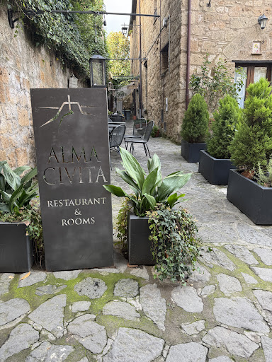 Spesso rimaniamo fuorviati da luoghi fatti di trambusto e clamore e del tutto privi di classe, sostanza ma soprattutto...anima. Alma Civita, al contrario, si trova in un luogo meraviglioso, fatto di storia, cultura, tradizione, amore per le cose che durano, ma soprattutto Natura splendida e viva. È il luogo dove l'anima, il cuore e la mente dialogano tra loro tramite le emozioni trasmesse dai sapori meravigliosi, ideati dal cuore e dall'anima di persone che amano ciò che fanno. Questi sentori e queste emozioni si concretizzano in meravigliosi piatti tutti da gustare e più che speciali perché intrisi di semplicità e sentimenti ma soprattutto TRADIZIONE. La preparazione fatta ad arte, più che perfetta, si lega perfettamente con gli ingredienti di altissima qualità che vengono utilizzati con incredibile maestria. Tutto ciò rende non comune...del cibo comune. Olio extravergine di oliva degno di questa dicitura, tartufi neri spettacolari. Alma Civita é entrato senza dubbio tra i 10 migliori luoghi dove ho gustato del meraviglioso cibo. Tutto ciò che viene fatto qui diviene una vera e propria arte, un viaggio attraverso la vista, l’olfatto e il gusto ma soprattutto attraverso i sentimenti e le emozioni che possono nascere in coloro che gustano i sapori di un tempo, quelli semplici e genuini. Da Alma Civita la cucina dello Chef Gabriele, unitamente al Patron Chef Maurizio Rocchi è talento puro, è la riscoperta di una tradizione rivisitata, tutta italiana. Emozioni dell’anima vengono avvalorate dai sorrisi e dalla gentilezza infinita di tutto lo staff in particolar modo dall'eccellente Sergio. Il servizio è connotato da un altissmo livello professionale estremamente raro da incontrare proprio perché informale ma puntuale e preciso, sempre. I prodotti e le preparazioni sono caratterizzati da un bouquet e persistenza al palato di altissima qualità e delicatezza. Un flusso continuo di sapori ed emozioni che iniziano dalla consistenza degli elementi utilizzati per poi sfociare nella perfezione dell'evoluzione al primo boccone. Due sono gli elementi predominanti: la tecnica di preparazione e le materie prime di eccelsa qualità. La tecnica è un'ampia e sapiente dimostrazione di conoscenza dei prodotti del territorio umbro. Questo standard qualitativo permette al cliente di godere appieno dei sapori. Gli elementi secondari non vengono mai posti a coprire l'elemento principale ma lo accompagnano, sempre, in modo da permettere al palato di distinguere i sapori uno dall'altro. Gli ingredienti si rivelano decisivi nell'esaltare i sapori che, in bocca, appaiono netti, corposi ma allo stesso tempo delicati e persistenti. Ricchezza, sapiditá, dolcezza, croccantezza. Questo è il feel rouge di qualsiasi piatto si posi sulla tavola. Con ogni piatto incomincia un viaggio fantastico attraverso un mondo stupendo, proprio come un film di fantasia. Il menù degustazione è qualcosa di assurdamente buono. Vino, rosso, egregio e perfetto per le pietanze scelte. Secco, fresco, fruttato al punto giusto, si lega in armonia con i sapori incredibili dei piatti, esaltandone i sapori in entrata e al fin di bocca. Un più che perfetto ed eccellente trait d'union che crea un'amalgama tra gli aromi dei piatti ed il palato. Il posto è semplice e senza fronzoli ma meraviglioso proprio per questo. La qualità dei prodotti è probabilmente tra le migliori che ho sperimentato, perché selezionati con maniacale attenzione. Qualsiasi cosa è IMPECCABILE perché SEMPLICE. Vorrei poter trasportare questo luogo in ogni dove, insieme a coloro che ne fanno parte, per rendere ogni istante unico e meraviglioso. Senza dubbio il massimo che si possa desiderare ed andrà sempre ben oltre le migliori aspettative possibili. Ecco perché il ringraziamento è per quel che sarà e per quel che è già stato. Il ricordo più bello che porterò con me per sempre è la meravigliosa Alessandra, ragazza ma soprattutto Donna di una dolcezza e bellezza senza eguali che entrano dirette nel cuore, negli occhi e nell'anima.