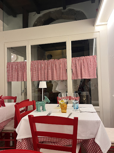 Abbiamo cenato qui questa sera 25/10/25 ho prenotato in maniere semplice tramite un messaggino di whatsapp! Che dire… Partiamo dalla location: raffinata, piena di gusto, pulitissima e molto intima, bella musica di sottofondo che lascia comunque il piacere di conversare (locale con tutti i tavoli pieni)! Mise en place curata con doppia tovaglia e simpatici asinelli in ceramica colorata su ogni tavolo! Al muro si trovano appesi piatti decorati con frasi celebri, tutto sui toni del bianco e rosso! Il menù: ci sono diverse scelte tra antipasti, primi, secondi, contorni e dolci circa 4/5 scelte di ognuno con prodotti a km zero e del territorio! Eccellenze di materie prime abbinate sapientemente tra loro! Piatti ricchi e molto abbondanti oltre che super gustosi! Noi eravamo in due e abbiamo preso un antipasto dell’hostaria da smezzare perché davvero abbondante con saluti e formaggi, frutta fresca, bruschette e pizza fritta… una leccornia!!! Costo 20€ Abbiamo poi proseguito con carbonara con tartufo 13€ e piciarelli con crema di pistacchi e guanciale croccante…13€ entrambi i piatti divini e abbondantissimi!!! Per concludere sorbetto di fragole e champagne… 7€ divino!!! Il piatto mi è stato presentato con una frase disegnata con glassa sul bordo!!! Davvero originale!! E comunque ogni impiattamento curato e raffinato! Buona carta dei vini con molto prodotti del territorio e alcune chicche!! Noi abbiamo preso una bottiglia di “Notturno dei Calanchi” Servizio: la cameriera era una signora dolcissima dalla gentilezza e simpatia uniche… super professionale nella spiegazione delle pietanze e competente nella spiegazione dei vini. Ci ha coccolato nel vero senso della parola! Si vede che fa questo mestiere da tanti anni e ci mette tanta passione e amore per il cliente. Conto: per tutto quello che abbiamo mangiato e bevuto (compreso di pane, acqua, caffè e ammazzacaffè che sopra non sono stati citati) abbiamo speso 90€ in totale! Ho scelto “C’era una volta… l’hosteria” per le sue recensioni e fotografie del locale e dei piatti trovate su internet e su Instagram e posso assicurare che ne è valsa davvero la pena!!! Complimenti davvero!! Dovrebbero esserci molti più ristoranti così!! Spero di tornare a trovarvi!! Grazie davvero per la...