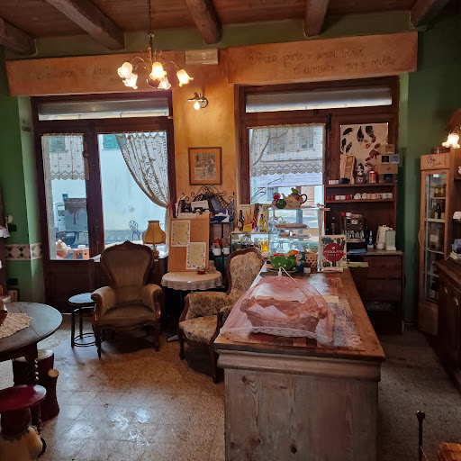 Read moreCi fermiamo qui dopo una mattinata di pioggia, stanchi ed affamati. Dico la verità che al momento mi è sembrato un luogo solo per merende e co., invece fanno anche dei primi strepitosi. Spesso organizzano serate a tema....o feste. La signora e la ragazza (entrambe mi sembravano, simpaticamente, due streghette alle prese con erbe e intingoli magici, e anche l ambiente ricorda un pò, una casetta fatata!!) che l aiutava son state davvero gentili e cortesi; pareva di stare dalla nonna, non solo per l arredo e la stufa, ma anche per la loro calorosa ospitalità. Abbiamo preso gnocchi al pesto e ravioli di Borragine, erba tipica di qui che sta bene con tutto. Piatti buonissimi e abbondanti. Nell attesa ci hanno offerto un aperitivo con pizzette e taralli. Poi torta della nonna , fatta in casa, ottima. Insomma, ci siamo trovati davvero bene!!!! Un saluto dalla...