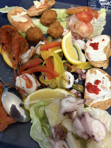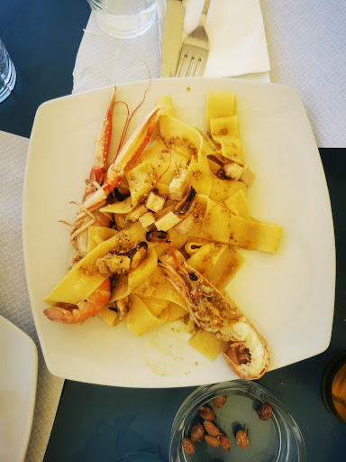 Read morePer gli antipasti non ci siamo proprio. 20€ e pochissimo pesce, il tagliere appena arriva sembra abbondante ma è pieno di pomodori e cipolla, sembra fatto apposta per farlo sembrare abbondante; ad esempio c’era un pomodoro gigante con dei piccoli tagli e sopra 3 piccole vongole, un antipasto senza senso. Uno invece aveva un filo di pesce e sopra era pieno di cipolle e pomodori. 20€ veramente esagerato e poi era tutto messo a casaccio. Il menù è un po’ scarso, il pesce è buono per carità ma secondo me è leggermente caro come rapporto qualità-prezzo. I primi erano abbondanti e molto buoni, soprattutto gli spaghetti con ricci e bottarga. Il servizio non mi è piaciuto: tempi di attesa esagerati, in tutto il ristorante eravamo sì e no in 5 e la cameriera è un po’ sbadata. Abbiamo ordinato due caffè (1,30€ ognuno) ed erano molto ristretti e un amaro e abbiamo dovuto aspettare 20 minuti. Abbiamo chiamato la cameriera e abbiamo chiesto: “scusami, te li abbiamo già chiesti i caffè?” E con aria spocchiosa ha risposto con un secco no. Però per i primi e la location che dà sul mare ne vale...