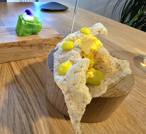 Il cibo è squisito, preparato con grande cura e presentato magnificamente. Tutto è fresco e di alta qualità. Entrambe le volte abbiamo optato per il menù a sorpresa e siamo rimasti incantati dalla varietà e dalla creatività dei piatti. Non possiamo dire quale menù ci sia piaciuto di più, poiché tutti i 12 piatti erano un sogno.