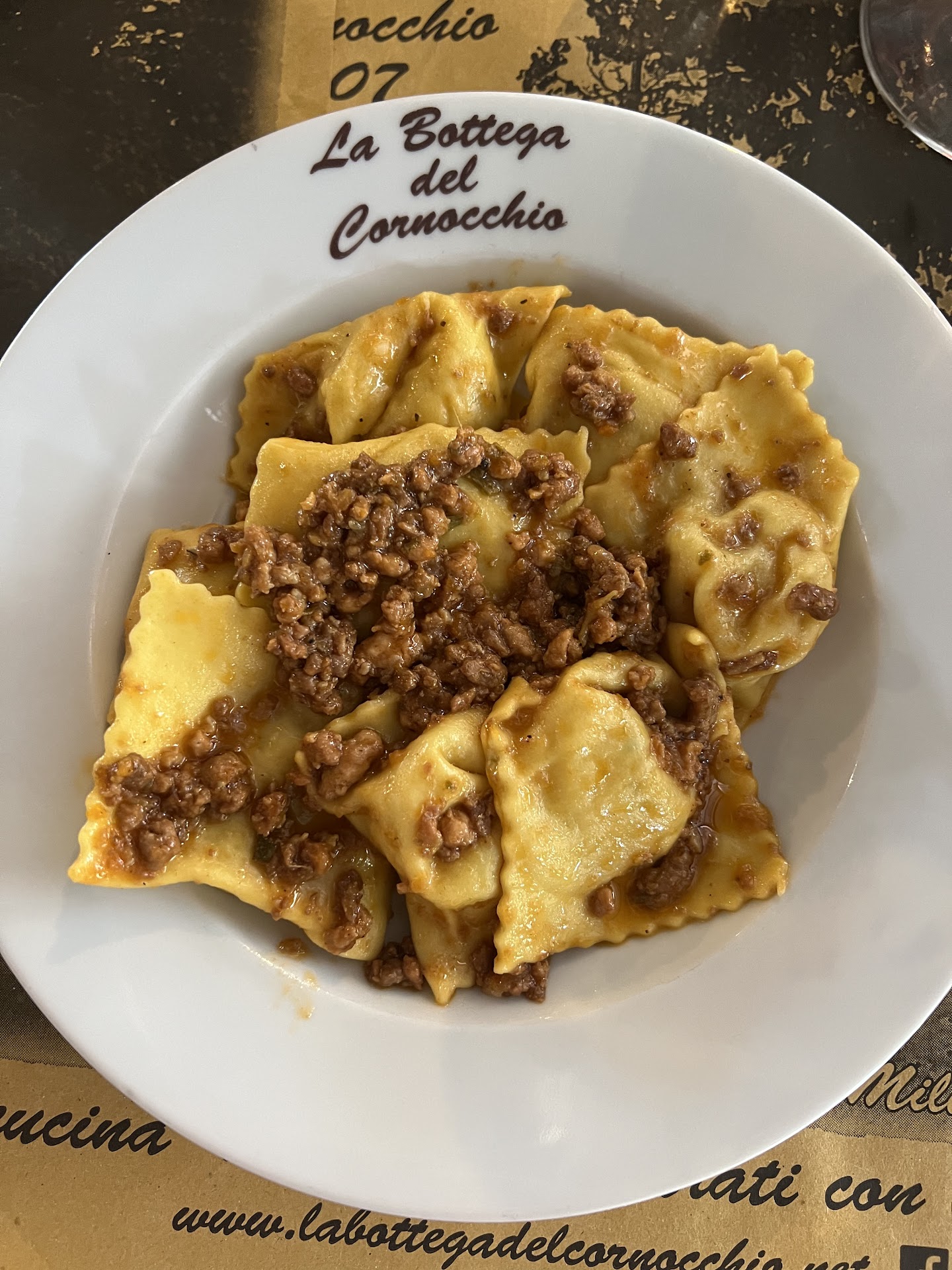 Abbiamo ordinato i tortelli ripieni di patate al ragù, un piatto simbolo della zona, e posso dire con certezza che sono tra i migliori mai assaggiati. La pasta era fatta in casa, dalla consistenza perfetta, e il ripieno di patate era delicato ma gustoso, arricchito da un ragù corposo e saporito, cucinato come una volta. Ogni forchettata era pura soddisfazione, un equilibrio perfetto tra semplicità e sapore.