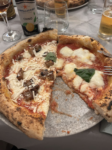 L'eccellenza! Parcheggio: Ci avevano suggerito di assaggiare la pizza di questo locale davanti cui, spessissimo siamo passati, desistendo a volte, per via della posizione che, ad una prima occhiata distratta, non sembra essere corredato da facili parcheggi. Ad indurci in inganno era la convinzione che la piazzetta di fronte al lato opposto della strada fosse di pertinenza della caserma dei carabinieri. Invece è parcheggio pubblico, quindi problema inesistente Ambiente: Locale raccolto, pulito, di colori neutri, con qualche dettaglio apprezzabile di ceramica di pregio. Serata senza schiamazzi, rilassante, dove chiacchierare con i propri amici e gustare il cibo sono le cose che vengono naturalmente accentuate da questo contesto privo di inutili ostentazioni. Al pagamento il servizio pos non è contactless, quindi per gli amanti delle tecnologie di pagamento virtuale tipo wallet o orologi NFC, ricordate di portare la carta fisica con voi o il contante. Servizio e personale: Che dire! Impeccabile. Educazione, attenzione al cliente e accoglienza di ogni richiesta. Preparazione perfetta e rapida di ogni portata. Nessuna estenuante attesa, tutto condotto a ritmo magistrale Pizze: Superlative. Difficile trovare aggettivi. Abbiamo mangiato pizze buonissime, da Bergamo, Pompei, perfino qui a Barcellona, ma nessuna così! Raccoglie in un'unica pizza tutte le buone esperienze che abbiamo apprezzato solo parzialmente altrove. Dove c'era un buonissimo impasto, mancava la preparazione in cucina degli ingredienti, dove c'erano ingredienti soddisfacenti, l'impasto non era soffice come una nuvola. Qui abbiamo trovato la perfetta coniugazione di tutte le declinazioni gustative. E ci siamo regalati una pizza straordinaria che ha meritato ogni centesimo speso: vellutata di zucca, funghi porcini, tartufo nero, burrata e crema con granella di pistacchio. Sbavo ancora adesso...