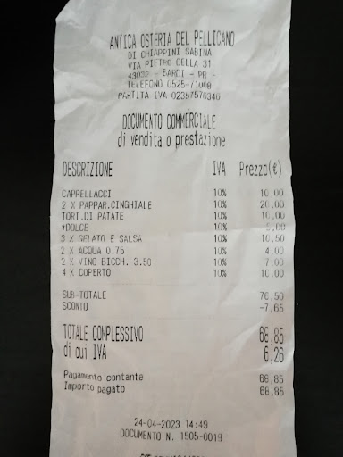 Read moreTipica Osteria situata accanto alla Piazza centrale di Bardi ( Piazza Martiri d'Ungheria, a poca distanza anche dalla Magnifica Rocca/Fortezza ), proprio sotto il Municipio e la grande Chiesa dedicata a Maria Addolorata, e dove è presente un ampio parcheggio : dalla parte bassa di quest'ultimo ( è in decisa pendenza ) si accede in un lungo porticato che nella bella stagione funge da plateatico esterno, ampliando così le possibilità ricettive del locale, che all'interno si presenta piuttosto ristretto, una saletta quasi "intima", dall'arredamento molto semplice, essenziale, proprio da Tipica Osteria d'altri tempi, dove i punti forti sono rappresentati dalla sincera bontà e qualità dei piatti proposti ( con menù a scelta fra 3/4 antipasti, 5/6 primi ed altrettanti secondi, dolci fatti in casa ) e dalla Simpatica e Genuina Cortesia del Personale 👍🤟👌.... Prezzi direi corretti e quindi risultato finale un Piacevolissimo Pit-stop Culinario durante un giretto motociclistico in...