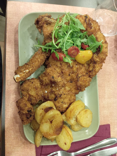 Read moredomenica siamo stati in questa trattoria per un pranzo con menu fisso a base di porcini che comprendeva: un antipasto, un primo ,un secondo e il dolce, 30euro bevande escluse. premetto eravamo 25 persone e a parte 4/5 menu bimbi già concordati in settimana via telefono tutti han mangiato le stesse cose. Voto servizio: c'erano 2 camerieri, il primo bene o male si sbatteva, l'altra ragazza mi spiace dirlo ma sembrava fosse li per caso, chiedevi il pane per 25 e tornava con un sacchettino con 7/8 fette di pane per 25.Scadente! Cibo: Antipasto 1 fetta di carpaccio e 2 pezzi di porcini fritti (buono ma decisamente poco) il risotto è arrivato alle 14;15..(ci eravamo seduti alle 12,45 circa) senza infamia e senza lode leggermente insipido ma, la parte "migliore" il secondo che prevedeva arrosto di maiale con porcini, (arrivato un'ora dopo) bene: un pezzettino di arrosto 5 cm a testa con i porcini. Buono, ben cotto e non stopposo ma la porzione decisamente Imbarazzante! Per dolce una coppetta di...