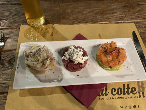 Read moreSe ti chiedessero in cosa consista un "pasto veloce", la prima risposta che ti verrebbe in mente sarebbe probabilmente un panino farcito. Affetti, apri, butti dentro, richiudi e via. Niente di più semplice e immediato. Ma "Al Coltello" i panini sono roba seria, la specialità della casa. Niente a che vedere con un take-away o un chiosco: "Al Coltello" è un locale ben arredato, curato e attento al dettaglio, nel cuore del Quartiere Umbertino. A cinquanta metri dal Lungomare. Quindi entri, saluti, ti siedi, attendi, ordini da bere, scegli dal menù e attendi di nuovo. E tutto questo ti confonde perché in fondo vuoi solo un panino, che ci vorrà mai? Poi dopo un pò capisci e ti assalgono i sensi di colpa per aver dubitato di ciò che ti si palesa davanti: il CACCIATORE. No, non è il tizio stalker di Biancaneve, ma un mix idilliaco di spianata di cervo, straccia affumicata, pesto di basilico e pomodorini freschi, il tutto schiacciato tra due pareti di pane di pregiato grano duro. Ingredienti pazzeschi per un risultato devastante. Il vero panino gourmet: fresco, croccante, profumato, bello pure da guardare. Lo addenti "pulito" e di gusto, perché non cola come un vulcano delle Isole Fiji e non si sfalda dopo due morsi. E lo assapori, prendendoti tutto il tempo del mondo e brindando con un buon vino. La morale è che "Al Coltello" non solo gratifichi le tue papille ma, se sei a corto di argomenti, puoi discutere di Schopenhauer senza sembrare noioso, ispirandoti alla tartare, alla mozzarella di bufala e al capocollo di Martina che ordini a corollario di una cena top. Più estetica di così! Complimenti al titolare Carlo per la bellissima attività e a Chiara, sempre col "coltello tra i denti", attentissima alle richieste...