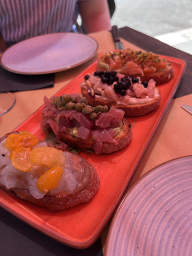 Read moreFun little restaurant on a busy street, great with friends. I personally loved sitting there on my own and watch the city being alive on a Friday night. I’ve tried the nachos with polpo and I found it was a fun declination of the traditional panino from Bari. It did not wow me but the polpo was very tender and the nachos were an artisanal made corn tortillas, so probably it’s just that cime di Rapa is not my thing….The protagonist of the dinner was the tris of tartare. I usually like my tartare a little bit colder in temperature but the pairings (especially the tuna with stracciatella) were very tasty....