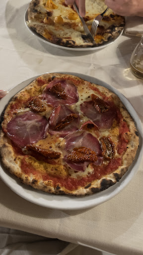 Questo è il secondo anno che visito questo ristorante. Il primo anno mi sentivo non apprezzato perché mangiavo solo pizza e non bevevo vino. Ho capito che questo ristorante non è in realtà una pizzeria come in Germania. In realtà si considera un ristorante con più portate. Anche l'ambiente esclusivo e il servizio incredibilmente buono corrispondono a questa intenzione. Pertanto, è consigliabile prepararsi a questo e vedere davvero il posto come un ristorante a più portate. Ho osservato le famiglie italiane. Mangiano tutti fino a 3-4 portate. Ed è esattamente così che dovrebbe essere. Quindi se volete mangiare velocemente una pizza e bere una cola, questo è il posto sbagliato. Ma se volete davvero passare la serata con poche portate e un ambiente meraviglioso, questo è il posto giusto per voi. Il cibo è incredibilmente fantastico. Potrete, per così dire, conoscere tutte le specialità della cucina locale al più alto livello. I camerieri sono estremamente preparati e tutti altamente professionali. Posso consigliare vivamente questo ristorante. Ringrazio tutti per questa meravigliosa cucina. Noi turisti abbiamo il privilegio di poter soggiornare in un luogo simbolo della vita italiana. Con stima e ringraziamento, sono felice che sia possibile vivere questa esperienza. I miei ringraziamenti vanno ad Antonio, Francesco, Maria, Roberto e a tutti coloro di cui ora non conosco i nomi, ma di cui ho tenuto presenti i volti amichevoli. E soprattutto a Paolo, che mi ha sempre intrattenuto magnificamente.