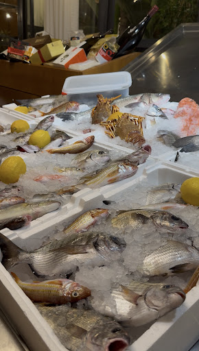 My friends in Bari recommended this fish restaurant and it did not disappoint Warning long post and also please make a reservation if you want to eat here especially on a busy Sunday afternoon. We almost didn't get to enjoy this fabulous lunch experience. This was one of our "splurge" meals where we decided not to worry about the prices and just order food and wine and sit back and enjoy! We are finding that order the expensive mixed antipasto fish dishes (mix to) are the best value and a great way to sample many different items. We had so much it's hard to remember but perhaps the photos will help tell the story. One of the highlights from this trip to Italy in terms of food has been the raw shrimp Gamberini crudo.. Especially the tiny ones - although all are good, we have really enjoyed the tiny ones the best both here in Bari at La Pescatore and also in Sardinia too! At Pescatore we ordered a mixed crudo seafood and received so many dishes I lost count. We also had a risotto d'mare - which was our first risotto on this trip (every other place has been out of risotto when we've tried to order). It was so tasty with tiny local clams and al dente rice! I think there was also some delicious red shrimp but again, lost track of the specifics. Our bottle of wine - which from our NYC perspective was a bargain, a local rose was light, tart and fruity - recommended from the table next to us, who generously shared a sip with Chef Andrew and who indulged us in answering many questions about the food and the local area. In fact they recommended for us the excellent dinner we had that night in a nearby town about 30 minutes further south which we would have never thought of without their help. It was a bit hot at the table outside - my right arm was in the sun, but we were so happy that they accommodated us in a VERY busy very FULL of locals restaurant - that it was soon forgotten as the delicious food, charming service (the waiters joked with us, even with limited English from them and almost no Italian from us) and were quick and professional. LOVE. And highly recommended! The huge lobsters on display look so tempting but we weren't ready to mortgage our first born (yet). ...