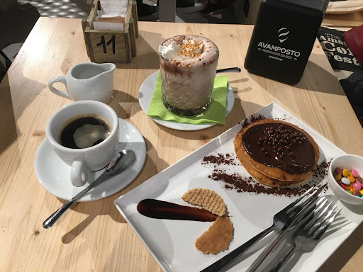 Avamposto is an independent coffee house, which stands out for its friendly and warm atmosphere, the modern and "fresh" design of the furnitures, a clean place where it's possibile to taste a good cup of coffee, read a book (there is a book corner), work or study with your pc or tablet (under every table there is a socket), and simply chilling-out with your friends!