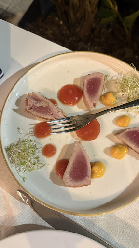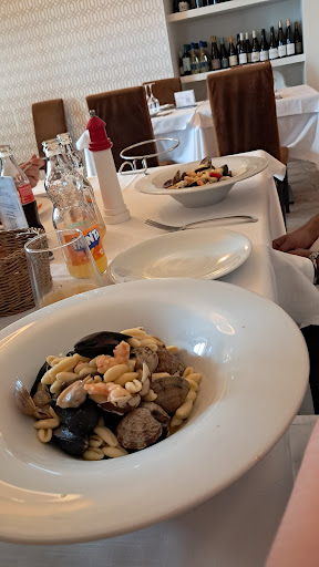 Il menù propone piatti ricercati ma mai eccessivamente elaborati, in grado di esaltare la freschezza e la qualità delle materie prime, prevalentemente a base di pesce. Abbiamo apprezzato particolarmente la cura nella presentazione e l’equilibrio dei sapori: ogni portata, dai crudi iniziali ai primi piatti, fino ai dessert, è stata un autentico piacere per il palato. I sapori sono intensi ma armoniosi, e si percepisce chiaramente la mano di una cucina che sa valorizzare il territorio e i suoi prodotti.