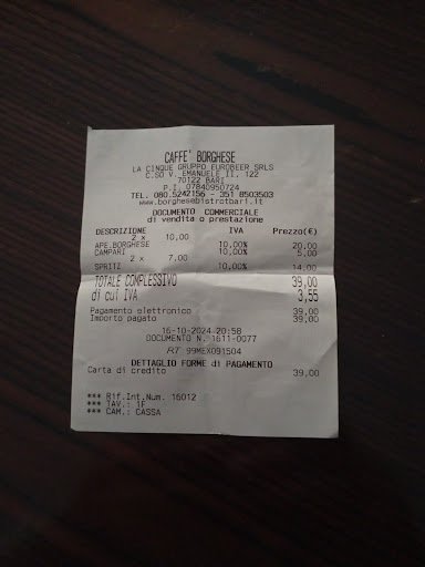 We came across this place on the way back to our hotel. The service/owner was friendly and spoke English. The menu was strange. It had between 50/100 items, but only 5/10 items were actually available. I ordered the steak entrecôte, while my wife ordered a pasta dish. My wife was happy with her food. I was disappointed. I was not even asked how I’d like my steak cooked and then it was delivered well-done and didn’t taste very good. I was very unhappy considering the price. What we were most disappointed by was the pricing. Despite the waiter’s friendly nature and it not feeling like he was a person to take advantage, some of the pricing was ridiculous. 5 euros for a standard 0.4 beer. Most expensive I’ve paid by far for a beer in Bari. Entrecôte steak listed as 16 euros, but charged at 18. Pasta dishes at 7 and 8 euros, but this particular one charged at 12, despite it matching what was on the menu for the others. Plus the coperto was listed at 2.50 euros on the receipt, despite being 2 euros on the menu. We have had a nice time in Bari and I didn’t want to put a dampener on our trip by complaining and querying every little overcharge, but this made our experience very...