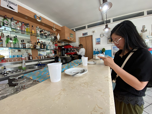 Entrati e neanche buon pomeriggio. Preso 2 gelati, non serviti, e con modo sgraziato ci ha detto "chiudete il frigo". Mia moglie mi ha detto che potremmo andarcene a mangiare sulla terrazza ed il boss con il solito buon modo ha detto allora ci sarà un supplemento, sic. Pagato con 10€, dopo un po senza alzare lo sguardo la commessa mi ha tirato 5€ stropicciato e dopo un pò 50 cent. Nessuno scontrino, nessun saluto Meditate...