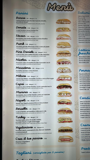 Il concept è semplice ma originale: panini con o senza mollica, preparati con ingredienti freschi e di qualità. Il menù offre una varietà di abbinamenti originali: dalla burrata impanata al tarallo con crema di cime di rape, alla porchetta con crema tricolore, fino a opzioni vegetariane. È possibile anche personalizzare il proprio panino scegliendo fino a tre ingredienti.