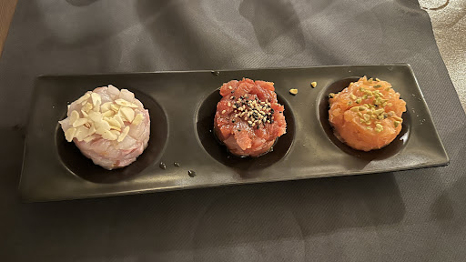 Per una cena fra amici, colleghi o famiglia è il posto ideale per una cena, differente. Anche con il proprio pet. Hananami: osservane i fiori. E la bontà della fioritura in questo locale è un belvedere con tutti i sensi. Sulle piattaforme internazionali è nei primi tre posti Giappo/Fusion, ma per me è il primo posto assoluto negli ultimi anni. Atmosfera con luci soffuse. Arredamento che riporta all'immagine di un grande ciliegio sempre in bella vista: l'accostamento dei colori marrone e rosa è la prima cosa che noti. Subito dopo, l'accoglienza sempre non invadente del personale. Infine ma non in ultimo, il cibo. Il primo ad essere sedotto è l'olfatto che è il primo senso che impatta con il cibo, poi il palato dove è sempre un'esplosione di conoscenza. Ho spaziato dal Sashimi misto a piccola stuzzicheria, accompagnati da un calice di rosato di cantine autoctone. Tutto delizioso. Ma la magia per me è stata la portata di noddles con cacio e tartufo bianco dal sapore vellutato e nonostante gli ingredienti, delicatissimo e mai eccessivo. Chiusura con dessert al cucchiaio con frutti di bosco colti in giornata e la classica torta al riso soffiato della pluripremiata azienda dolciaria di Noci. Prezzo nella media dei posti così. Vivamente...