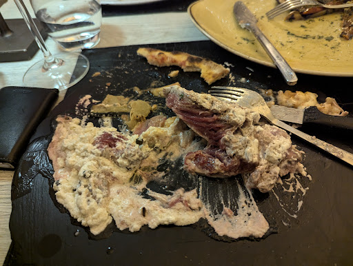 Read moreWell, this was with quite some distance our worst Italian food experience in 14 days Italy. While the ambient is to catch tourists like us (nice light, badly uncomfortable chairs), most ratings have to be completely fake in our option. We had tuna tartar, pizza and a pepper steak, grilled vegetables if you name it so. We managed to eat the tartar but wondered a bit about it's high pricetag for bad quality. When we almost finished with the tartar, some completely dry bread was brought, like it was from day before. The steak was... Hard do describe, better to see the picture, 22 € by the way without sides. A souce which had hardly something to do with pepper, cream like way over best before date, the medium steak was raw. The pizza was worse than an average bad German Italian pizza, hard to find a pizza like this in Italy I guess. One day later we had a completely different experience in La Battigia Ristorante, 4 Levels above this one and at the same price level, incredible. That shows how awesome bad this'll one was / is. Even the vine was average, thus it was the best on the table.