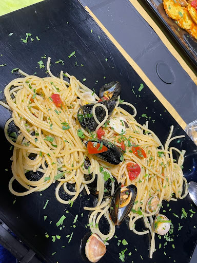 Read moreIo e il mio ragazzo stanchissimo dopo un lungo viaggio, decidiamo di fermarci qui per cena. Di ristorante ha ben poco, sembra più un’aia di casa e chiamarlo ambiente spartano sarebbe un complimento! Abbiamo cenato fuori e per andare in bagno, accanto alla cucina, le luci nella sala erano spente; facevano luce alla strada le luci che provenivano della cucina. Al momento dell’ ordinazione 2 antipasti “passabili” (4 bruschette al pomodoro e 1 olive con una ciotola sporca sui bordi) e 2 primi: ravioli al ragù montanaro e ho chiesto una variazione di pasta: se fosse possibile spaghetti alle vongole invece che cavatelli cozze e vongole; da puntualizzare che ciò che avevo chiesto si trovava nel menù ma sotto forma di altri abbinamenti. Il cameriere in un primo momento ci ha proposto di prendere il solito primo per entrambe, e già lì mi chiedo perché? Siamo 2 non una tavolata da 20 persone con 20 primi diversi. Dopodiché mi dice che per la variazione della pietanza doveva sentire la cucina; dopo qualche minuto torna dicendo che la variazione richiesta sarebbe stata effettuata. Bene arrivati i primi: il ragù montanaro era un sugo con pezzi di salsiccia e gli spaghetti pieni zuppi di olio con 4 vongole e 5 cozze (non richieste) di cui 2 pure chiuse e Del pesce non si sentiva nemmeno il gusto se lo avessi preparato a casa con i sughi surgelati avrei goduto di più. Servizio che lascia desiderare sicuramente non ci tornerei mai più, anche troppo caro per la qualità super...
