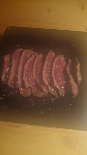 Per non farci mancare nulla abbiamo anche chiesto una tapa di entrecôte di vacca rubia servita al tavolo su pietra, una crema catalana (speravo fosse più piccante, visto che viene così indicata nel menù, ma era davvero una buona crema nel complesso), e caffè che ci è stato servito accompagnato da dei biscottini offerti da loro.
