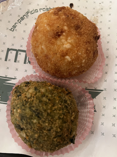 Read moreI went here twice and got different things and some were 10/10 like the risotto croquettes and this other thing that looked like a panzerotti but was ham and cheese and was bready (it’s in the photo with the little bacon topping). The panzerotti wasn’t the best I’ve had but it was decent and I’ve also had better focaccia, in my opinion this one had way too much tomato but if you like that then go for it! The best things have to be the mozzarella croquettes tho, I 100% recommend them.