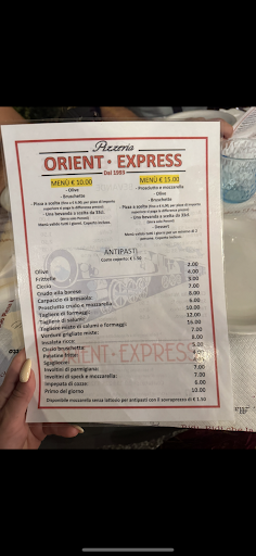 Read moreLa Pizzeria Orient Express è letteralmente una seconda casa; è ideale per ogni occasione, per festeggiare compleanni, lauree ed eventi o semplicemente per trascorrere una serata in compagnia. Hassan, il proprietario, è una persona gentilissima, super disponibile e riesce ad accontentare tutti i desideri dei suoi clienti, sia quelli storici che i nuovi. La sua pizza è buonissima e gli ingredienti tutti di ottima scelta! Sono disponibili anche menù fissi con antipatisti super: ad esempio parmigiana, patete riso e cozze, impetata di cozze, tempura di verdure, carciofi fritti... tutto davvero molto buono!!!! E soprattutto da provare!!! Hassan è circondato da un staff incredibile; giovani ragazzi molto disponibili, gentilissimi e sempre con il sorriso. Il locale è super pulito! Andate a trascorrere una serata all'Orient Express e non ve...