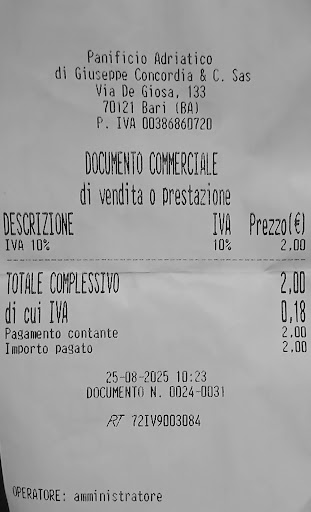 Read moreFocaccia straordinaria, una delle più buone provate a Bari. Sono passato in chiusura, alle 2 di pomeriggio del 21 agosto. Ero di passaggio x Bari risalendo verso Roma. Vedo questo panificio con la serranda a metà e decido di fermarmi. Ho chiesto disperato un pezzetto di focaccia, dato che intorno erano tutti chiusi, mi hanno riempito una busta con delle pizzette e una focaccia intera, ancora calda. Le due ragazze al banco, gentilissime, mi hanno rallegrato la giornata. La focaccia era incredibile, croccante in basso e morbida in alto, non troppo pesante o...