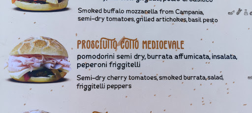 There aren't enough stars for this place! We took 3 sandwiches "to go" and besides the fact that they are huge, the only thing stopping you from eating more is the stomach when is more than full. I hardly could finish one sandwich and I was hungry. My wife only ate half. We jad 2 prosciutto cotto medievale and one mortadela artigianale. There was a goooood amount of meat and cheese inside, and the semi-dried tomatoes gave the incredible flavour that I could not get enough of it. The "mortadela artigianale" has some onion and pistachios and the flavour, again, divine! The man who prepared them is an Albanian man and I have to say that we haven't seen such a kind man in the whole area of Puglia. Helpful and funny, a very nice guy who really takes care of his business. I would give any pasta or pizza I had in Italy for a sandwich...