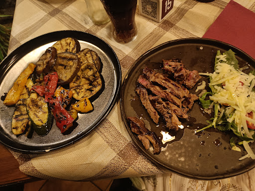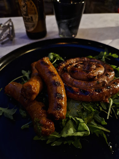 Interesting one this one! We hadn't even sat down and the waitress was desperate to know if we were eating steak or pizza, ok, let's get our coats off first! Ordered french fries, grilled veggies, salted steak slices with rosemary, mixed sausages and bomberos which were just rolled up bacon. French fries were hot, pretty salty and very mundane, nothing special just commercial fries 🍟 We couldn't get grilled vegetables and got a 'mixed green salad' instead which was just a plain bag salad with some arugula and tomato, again nothing special. The steak slices were actually pretty tasty a bit unevenly cooked and served with nothing. The sausages and bacon things were served with salad but the serving lady couldn't wait to remove those plates and it wasn't eaten! The cover charge was 3 euros each, I questioned it since service was scant and no bread and water was charged separately. I try to be fair when writing my reviews afterall this is someone's business. My overall impression for this meal was they couldn't wait to get us in and out, everything was bare minimum of standards and we were eating there doing them a favor. I don't recommend them, hard to imagine how they have such a high rating, maybe the pizzas are great. Good luck to them, don't recommend when there are so many other friendly and decent...