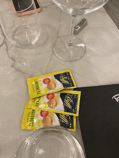 The menu described the risotto as including tartar fish (raw), but since we had a pregnant woman in our group, we requested a substitution with something cooked. What they brought out was a dry, bland risotto with no sauce, salt, tomatoes, or anything resembling a proper dish. As a "tip from the chef," they provided three little packets of mayonnaise and suggested we put it on top, claiming it was a local Bari specialty.