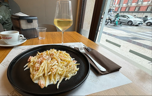 Price: I found the pricing reasonable, paying €10 for pasta with salmon. It’s on par with, or slightly cheaper than, similar establishments in the area.