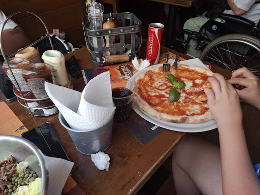 This restaurant has a great location in the city center, but that's about it. We expected, as it is an "American" restaurant, that the staff will be able to speak English. We were wrong. When choosing the wine, the waitress immediately told us that there was no red wine, but we can try the rosé. We wanted to try some Italian wine, we thought only Italian wines are in offer, but we got some Portuguese wine. The waitress could not open the wine at first, which should be a basic skill for staff in restaurants or bar. Cutlery was prepared for two persons - since there were three of us, we expected that the waitress will prepare cutlery for my boyfriend as well, but we had to point this out and she wondered why we wanted more cutlery. Now to food: pizza buffalota was a disaster. I would say that it was a combination of soup and mozzarella on dough, since literally everything leaked from the pizza and two basil leafs on top were not enogh for one pizza . SPAGHETTI WESTERN I'm not going to judge because it's something traditional, but I don't think they should be as bad (and burnt) as they were. Cacio e Pepe spaghetti would need a little more salt but that's a detail. PANZEROTTO FRITTO CLASSICO wasn't that bad. Definitely the service should be improved and invested in staff training in foreign languages and wine opening, and if you write me that she was a new staff member, I've read in the reviews that there was a problem with...