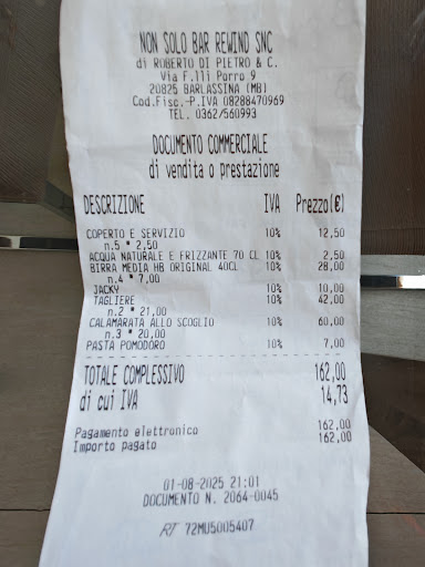 Read moreIo e la mia famiglia andiamo al Non solo bar da sempre e abbiamo sempre apprezzato la squisite pizze. Il menù propone infatti un'ampia e variegata scelta di pizze sfiziose con differenti ingredienti abbinati in modo non scontato. La location esterna è più piacevole rispetto all'indoor, perché personalmente preferisco sempre passare un serata fuori se il tempo lo permette, dove si respira di più e c'è luce naturale. Ho sempre avuto la sensazione di essere un po' in vacanza durante la permanenza nel ristorante, forse per la tranquillità sonora della posizione della struttura e per il personale che serve e ti circonda. Provare per...