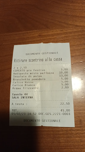 Parto dal presupposto che stimo il luogo e titolari come persone ma dopo ieri, non posso dire lo stesso di loro come imprenditori/ristoratori. ex frequentatore, e non ci andavo da anni non essendo sempre in Italia, "scelgo" appunto di entrarci ... Gentilezza assoluta per averci appartato in un'area più tranquilla della location (sempre molto carina fortunatamente). Servizio scarsissimo..apprezzo l'entrée di benvenuto, ma dopo una presa di comanda a tavola arriva il pane o grissino o carasau ecc quello che sia... L'ho dovuto chiedere ed è arrivato dopo 20 minuti, quando la portata che "lo richiedesse", era finita.. Calice di vino X 2 ... Uno di più, l'altro meno... Ordiniamo 3 antipasti e 2 primi(quelli scritti sul menù non c'era manco uno quindi fuori carta) che avremmo scelto dopo gli antipasti, non per fare come ci piace o mettere il servizio in difficoltà ma semplicemente per capire quanta fame avremmo Ancora avuto e non creare spreco inutile nel piatto non mangiando tutto... Gli antipasti arrivano 10 minuti l'uno dopo l'altro, no tutti insieme quindi 30minuti "reali", camerieri consapevoli.... La pallozza di cacio e pepe molto fredda non specificando che all'Interno ci fosse mozzarella, nonostante l'avviso dato al cameriere che non è di digeribilità assoluta per una di noi 2 commensali.. L'insalata di polpo è stata la truffa di inizio febbraio per i miei gusti: 13 euro 9 pezzetti di patate con due tentacoli grandezza piccola in un mare di olio nel piatto.... Solitamente con un polipo di 15-18 euro al kg lo vedo scarso ma non voglio fare i conti in tasca a nessuno, ognuno tragga le proprie conclusioni, perché era buono ma misero, sia chiaro.... Non ordino più i primi perché sono entrato a 13:45 e ho chiesto il conto come potete vedere da scontrino alle 14:52 per avere 3 antipasti.. la fame ormai non c'era più perché lo stomaco si è chiuso... 45 euro li avrei pagati volentieri per solo questi 3 antipasti senza aggiungere i primi, ma almeno con porzioni degne e reali al prezzo scritto... I camerieri si sono dispiaciuti ma anche noi per loro perché inermi da prendere iniziative di qualsiasi natura a parte quella di offrirci un dolce.... Questo messaggio non è una critica, non voglio creare rivalità con nessuno o essere odiato però quel giorno ho pagato pun servizio che per me non era all'altezza del prezzo... spero che i titolari rifacciano un bel lavoro, re inserendosi correttamente e come i vecchi tempi.. Lo spero per me/noi soprattutto se dovrò mai essere nuovamente...