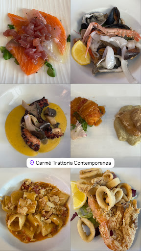 Read moreInizio 2025 PESSIMO Brutta esperienza con il tanto rinomato e apprezzato carme; con la mia famiglia decidiamo di prenotare a fine novembre un tavolo per 20 persone(più un sediolone per bimbo) per passare in compagnia ed allegria la fine del 2024, e l'inizio del 2025...ahinoi mai potevamo immaginare una completa mancanza di organizzazione, e totale disservizio, se dovessi elencare tutte le cose che non andavano bene non mi basterebbe una singola recensione, mi limito ad elencarne solo alcune: 1. Mancanza totale di spazio tra un tavolo e l'altro, camerieri impossibilitati a servirci ed essendo il nostro un tavolo di 20 persone abbiamo dovuto fare tipo "catena di montaggio" tra una portata e l'altra sia per ricevere i piatti che restituirli. 2. Mancando lo spazio "vitale" anche solo per poter far passare i camerieri(vittime anche loro della ingordigia dei titolari), mancava anche spazio per il sediolone, faccio notare il tutto alla titolare, la stessa mi risponde con testuali parole:"non posso mica occupare un posto per il sediolone" 3. Al nostro tavolo c'erano 2 menù terra, di questi 2 menù si sono visti solo antiposto e primo...e i due secondi che fine hanno fatto? 4. Sul menù c'era scritto lenticchie e cotechino..citando il famoso programma di Rai 3 mi viene da dire..chi li ha visti? 5. La sorpresa più amara però l'abbiamo al momento del conto: oltre al prezzo del menù di 55€ a persona, vediamo inseriti (non so con quale criterio), ben 100€ di fantomatici "extra", facciamo notare alla titolare che è assurdo dover pagare di più quando di regola visto i vari disagi avuti piuttosto avremmo dovuto pagare in meno..altro che extra...la titolare inizia stizzita a richiamare i camerieri(erano 3 per almeno 80 persone) quasi a voler rifarsi su di loro per le varie mancanze che avevamo subito e chiedendo loro il perché di quanto successo. Alla fine ulteriormente stizzita toglie dal conto i 100€ di extra e quasi dovevamo dirle "grazie". Questo purtroppo succede quando "l'imprenditore" pensa solo a intascare soldi senza dare in cambio un servizio che sia degno di essere chiamato tale..politica questa che non so fino a che punto possa essere fruttuosa, fatto sta che stasera per riempire a più non posso una sala che forse poteva contenere la metà delle persone presenti, la titolare non solo ha fatto una magra figura ma allo stesso tempo perderà anche un bel pò di clientela, e non mi riferisco solo al mio tavolo ma anche agli altri di fianco al nostro che così come noi non erano per niente felici del trattamento ricevuto. Detto questo buon 2025 a tutti (anche alla...