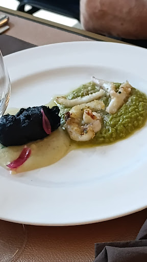 Il cibo deludente. Le portate calde sono arrivate fredde, le porzioni misere e, nella maggior parte dei casi, senza alcun sapore. Antipasti. Entreè dello chef? Focaccia... che entreè! Non bastava nemmeno per tutti. Carpaccio di mare alla mediterranea: fette biancastre dal sapore di niente. Nessuna traccia di salmone, pesce spada o tonno, come ci si potrebbe aspettare. Polpo arrosto. Due tentacoli molli, palesemente non freschi, senza gusto. Unico punto a favore, il purè di patate. Seppia scottata e panata su crema di piselli. La seppia scottata e panata era praticamente invisibile nel piatto. Abbiamo chiamato "Chi l'ha visto?". Pezzi bianchi che non davano di nulla. Anche qui, si salvava solo la crema di piselli. Bocconcino di baccalà in tempura, cipolla in agrodolce. Spacciato sul menù come portata unica, ma inserito nello stesso piatto della seppia. Posso solo pensare che non ne avessero abbastanza per farne due portate diverse. I primi piatti (una vera schifezza). Fusilloni, polpa di riccio di mare e gamberi rossi di Mazzara del Vallo: Pasta scotta, niente sapore di riccio (ci è sembrata una cremina scaldata di acqua marina della rive) e dei gamberi nemmeno l'ombra. Foglia di ulivo allo scoglio e rucola selvatica. Una specie di cavatelli verdi, con qualche vongoletta visibile al microscopio e alcune foglioline di rucola. Secondo piatto. Frittura mista: era tutto fuorché mista. Quattro anelli di totano (spacciati per calamaro) e due gamberetti. I più fortunati hanno trovato qualche piccolo tentacolo. Infine: sorbetto e dessert della casa. Per il sorbetto serviva una cannuccia. Arriva completamente sciolto! Altro che sorbetto, lo chiamerei succo freddo al limone. Dessert della casa: unico piatto apprezzato.