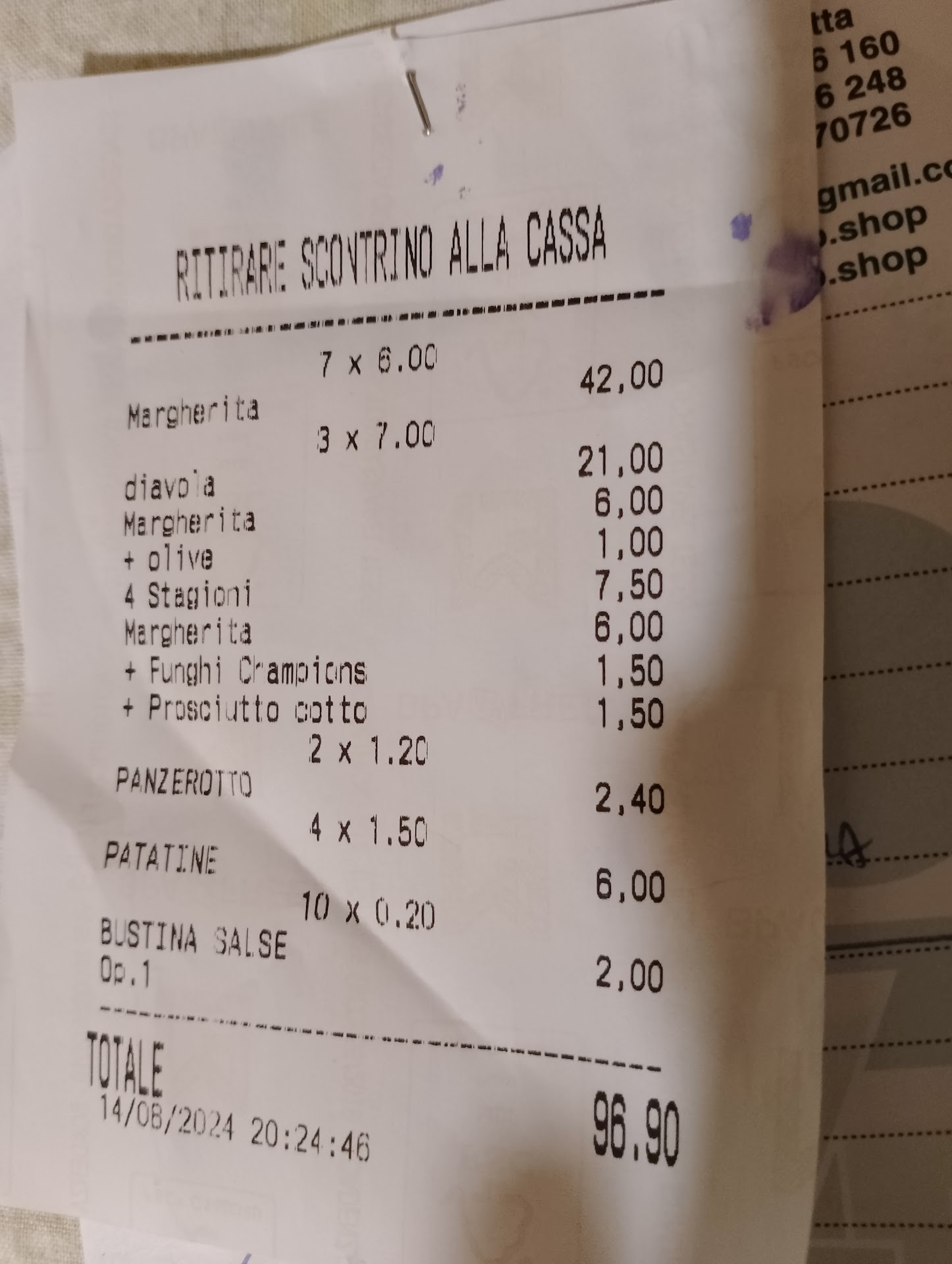 Read morePizza buona ma non eccezionale. Sconsiglio gli antipasti : porzioni ridotte, prezzi alti e sinceramente non di qualità. Frttura di calamari e gamberi dove poi scopri esserci in maggioranza zucchine, prezzo elevato per la porzione, senza sale e frittura non ben eseguita. Per non parlare dell'insalata di polpo dove ci sono due pezzi di polpo, colmi di aceto (non segnalato sul menú) e tutto il resto insalata. Mi dispiace ma prezzi alti e poca qualità/quantità. Il servizio lascia a desiderare, scortesi e poco professionali. Avevamo solo chiesto quanto ci volesse per le pizze e ci é stato risposto in malomodo che avevamo già avuto gli antipasti e quindi in pratica di aspettare. Climatizzatori che non funzionano, con questo caldo e tutti i tavoli pieni all'interno non si respirava, un bagno di sudore assurdo, non é davvero possibile lasciare i clienti in queste condizioni. In ultimo, ci hanno letteralmente cacciato perché c'era gente che aspettava fuori. Comprendo perfettamente che ci sia gente che aspetta un tavolo ma non é corretto portare il conto non appena finito di mangiare, considerato anche che avevamo ancora tutte le bibite sul tavolo. Mi dispiace ma non ci torneremo. Non é stata una bella esperienza. Un consiglio per i proprietari, cercate di lavorare sulla qualità dei piatti e sull'accoglienza e il benessere dei clienti piuttosto che sulla quantità. Buon proseguimento. In seguito alla sua risposta che purtroppo immaginavo visto la poca professionalità nelle risposte apportate a tutte le varie recensioni poco positive, volevo aggiungere che :