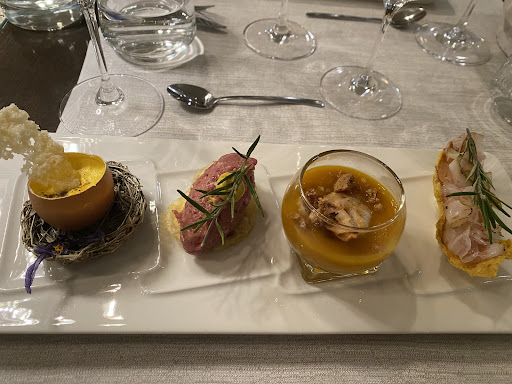 Read moreLocation interessante, giusto mix tra sobrietà ed eleganza. Personale gentile e professionale, ancora acerbo per la parvenza che il locale vuole offrire. Offerta gastronomica (intesa come piatti proposti) congrua e assolutamente di tutto rispetto. Purtroppo però le premesse e la lunga attesa non vengono coronate da quanto servito. Porzioni al limite inferiore dell'assaggio e cibi privi di sapore, che non appagano il palato, vanno ad inficiare un impiattamento da ristorante stellato. Scelta dei vini in linea con locali parilivello. Prezzo fuori da ogni logica, in rapporto alla quantità e alla preparazione del cibo offerta al cliente.