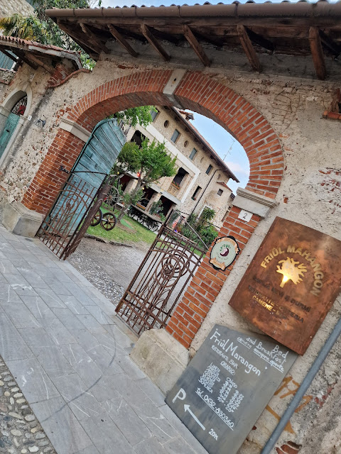 The stunningly beautiful farm building exterior remains, but inside is a complete modernisation that combines some exposed brickwork, traditional building materials and contemporary design.||The rooms are clean, warm (January) and stylish.||Our hosts Michele and Antonella couldn't possibly be more attentive or friendly than they were. They're also justifiably proud of their Friuli heritage.||There is a full range of drinks available that includes some excellent beer from a local micro brewery.||Michele is very knowledgeable about Friuli wine and will happily talk at length about all the different types available, the family history of the building, and the work involved in the conversion from farm buildings to how it is today.||The food is traditional and of excellent quality and freshness. The restaurant is famous for its meat fillet grill where again Michele has earned such a great reputation.||The FriulMarangon is set in the heart of Orgnano, close to the Village Church. The church bells chime during day on the hour and just walking around the village is a treat in itself.||Orgnano is just twenty minutes drive from the heart of Udine and everything that a modern city has to offer. If you want to experience true Friulan hospitaity away from (but near to) the city then you would surely struggle to find better than the...