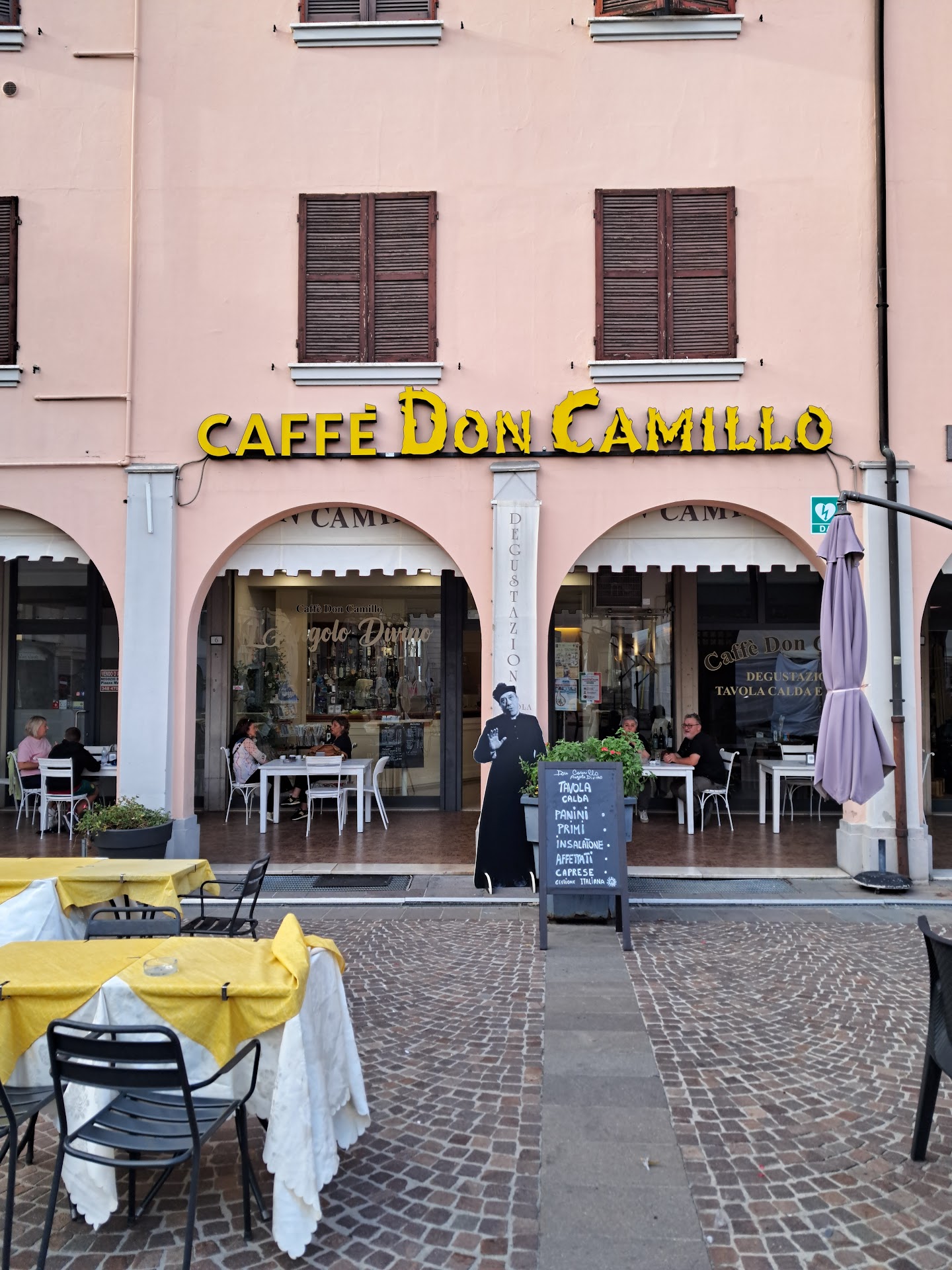 Nettes , zentral gelegenes Cafe im Zentrum der Don Camillo/Peppone Filmkulissen . Nachdem wir uns im Außenbereich einen Aperol gegönnt hatten (.....nachdem wir schon über 15 min. im Blickwinkel der Bedienung saßen und warten mußten ) entschlossen wir uns kurzerhand noch etwas zu Essen .